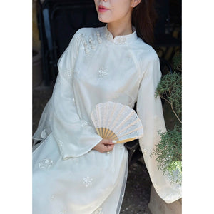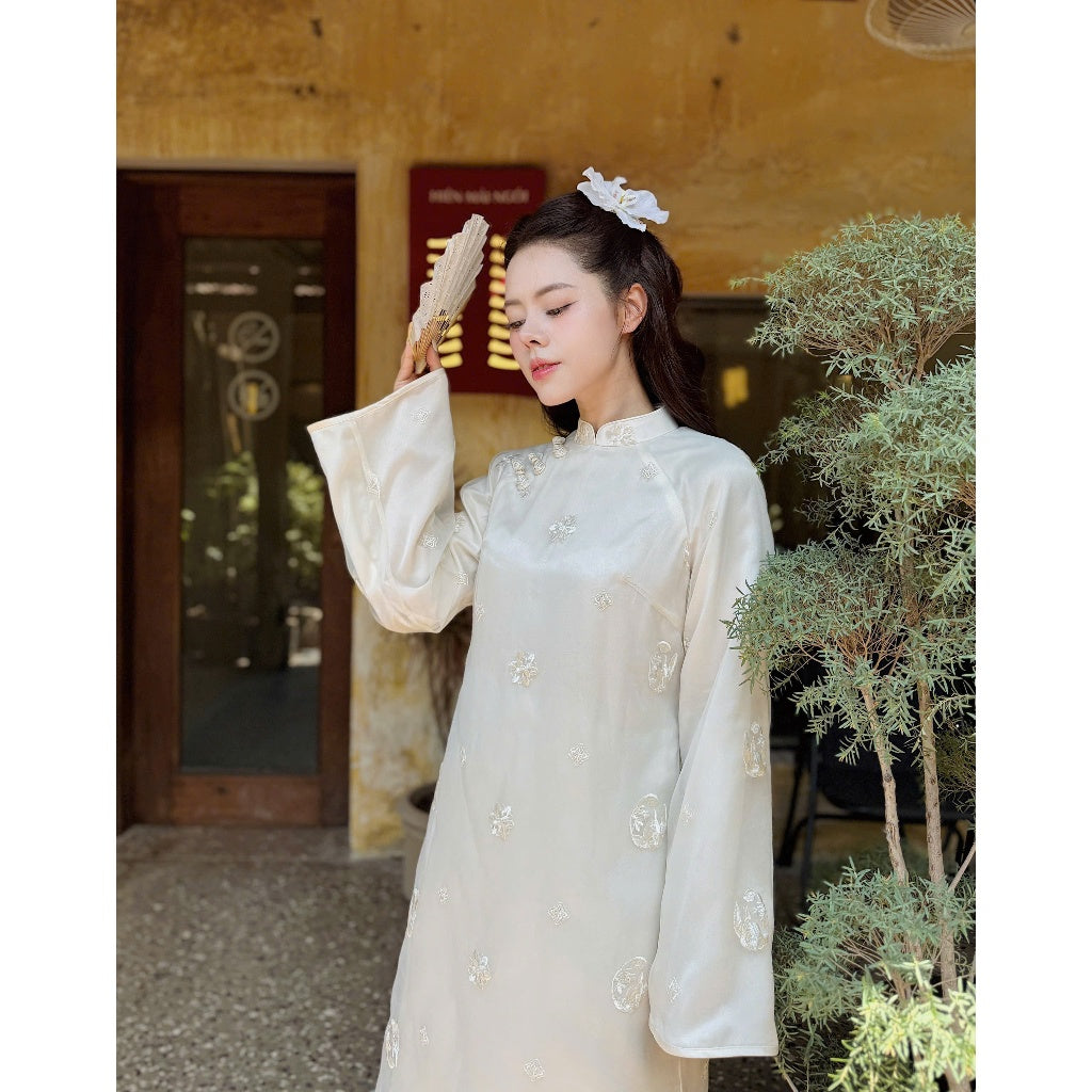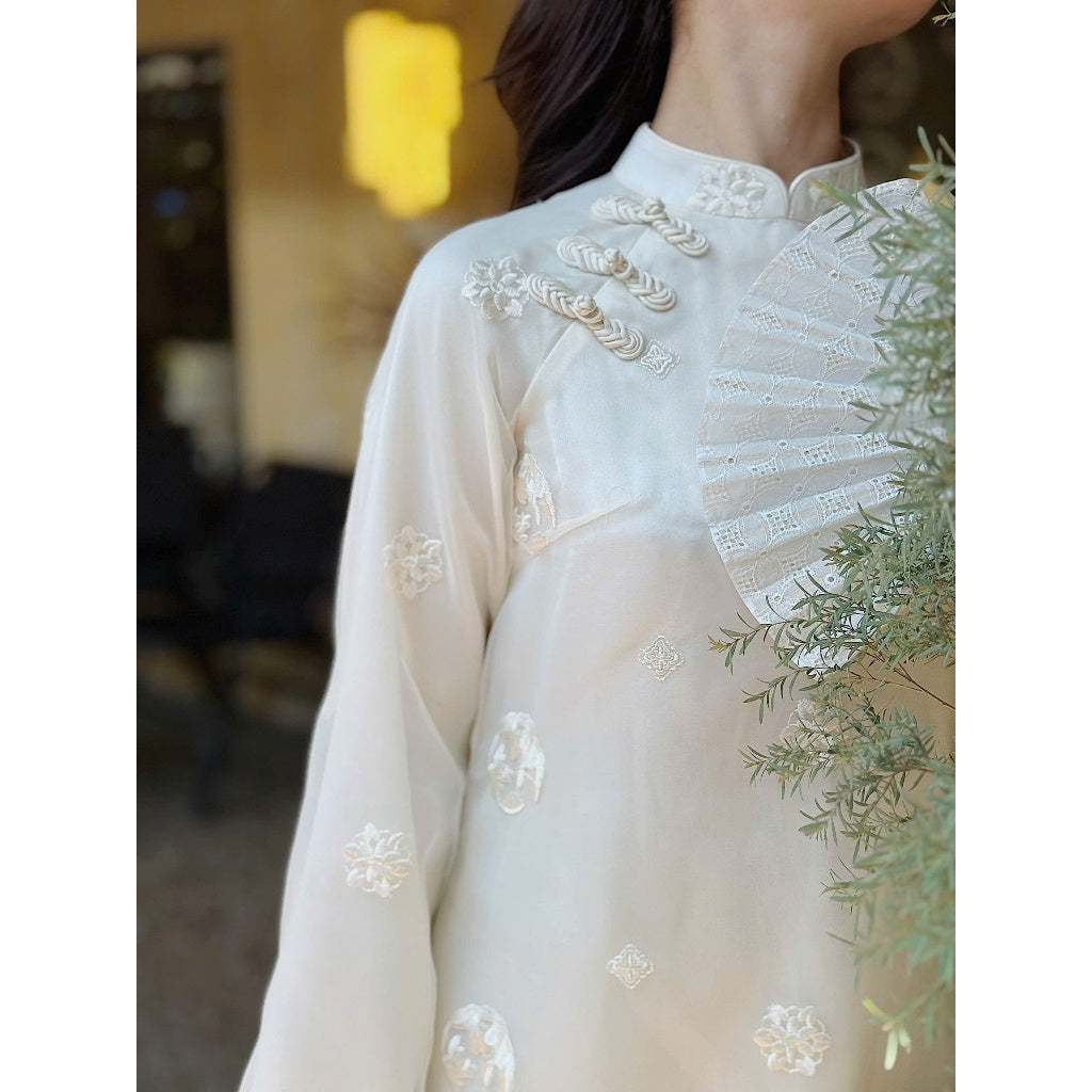 LINN Design 4-panel Ao Dai with embroidered flowers by My Uyen