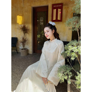 [PRE-ORDER] LINN Design 4-panel Ao Dai with embossed floral embroidery, My Uyen