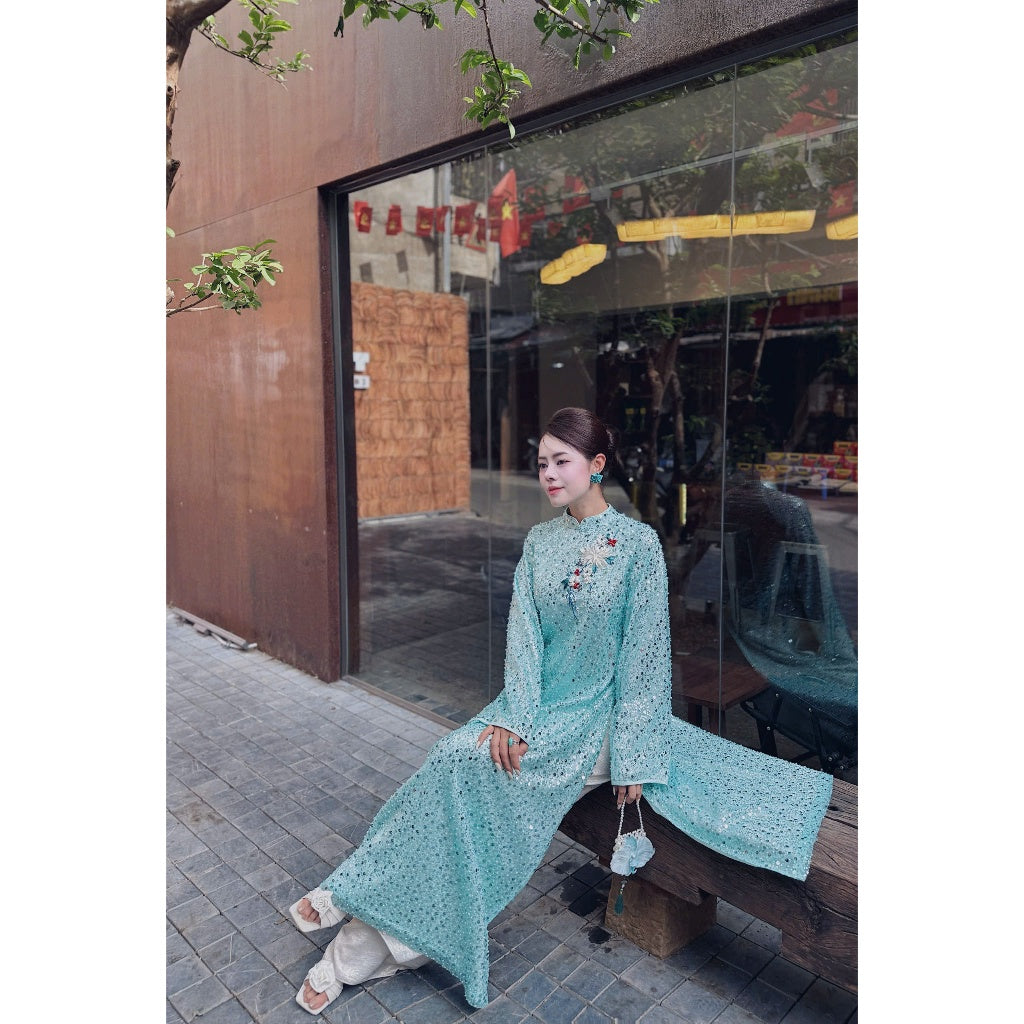 [PRE-ORDER] LINN Design 4-panel Ao Dai with Hoa Thuy ribbon embroidery