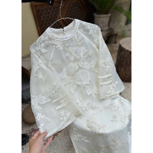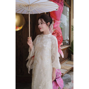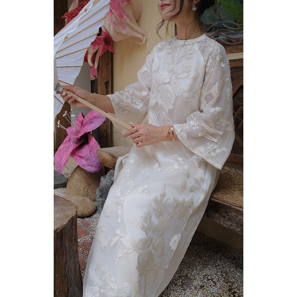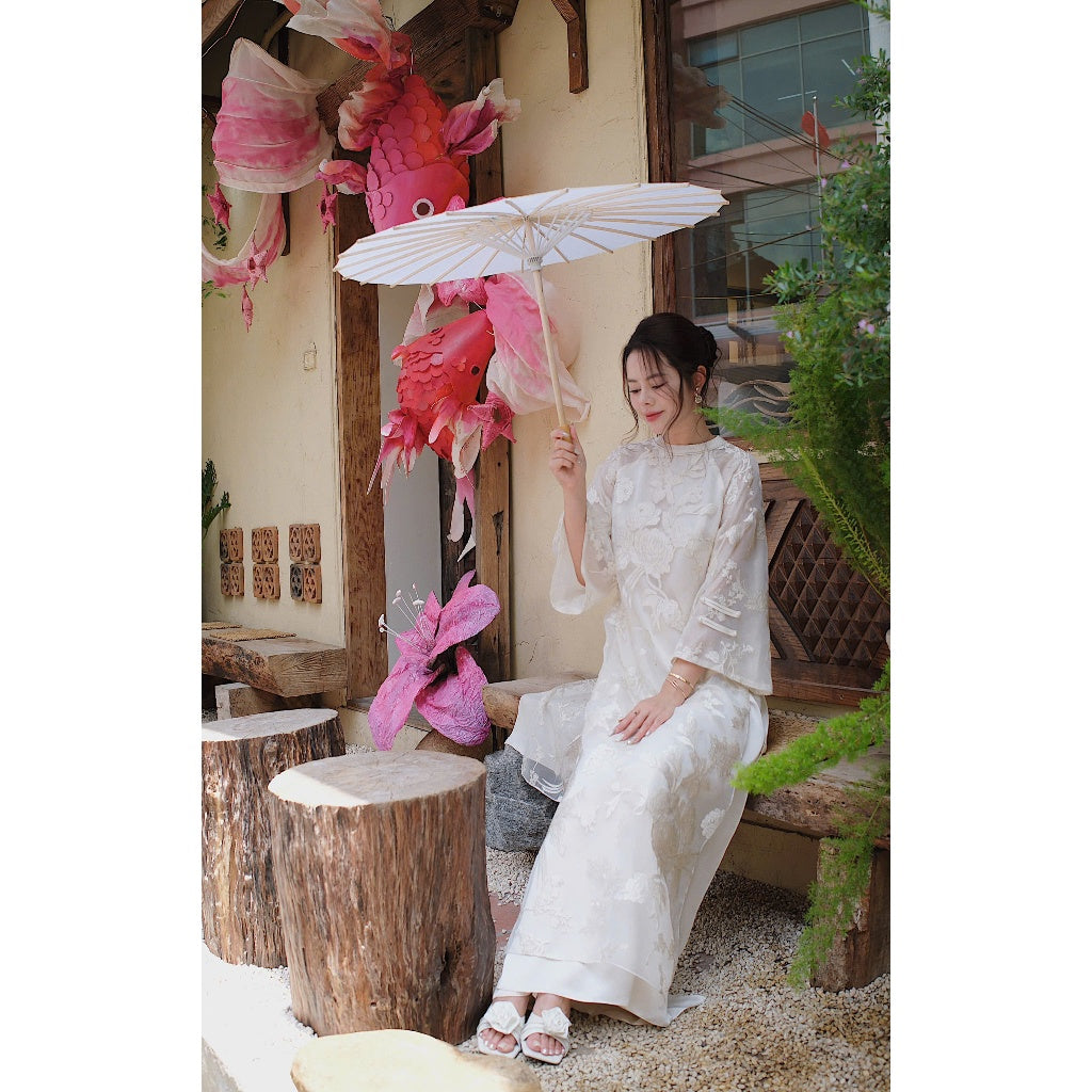 [PRE-ORDER] 4-panel Ao Dai with embroidered flowers by Diec Phi LINN Design