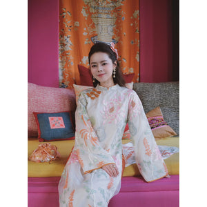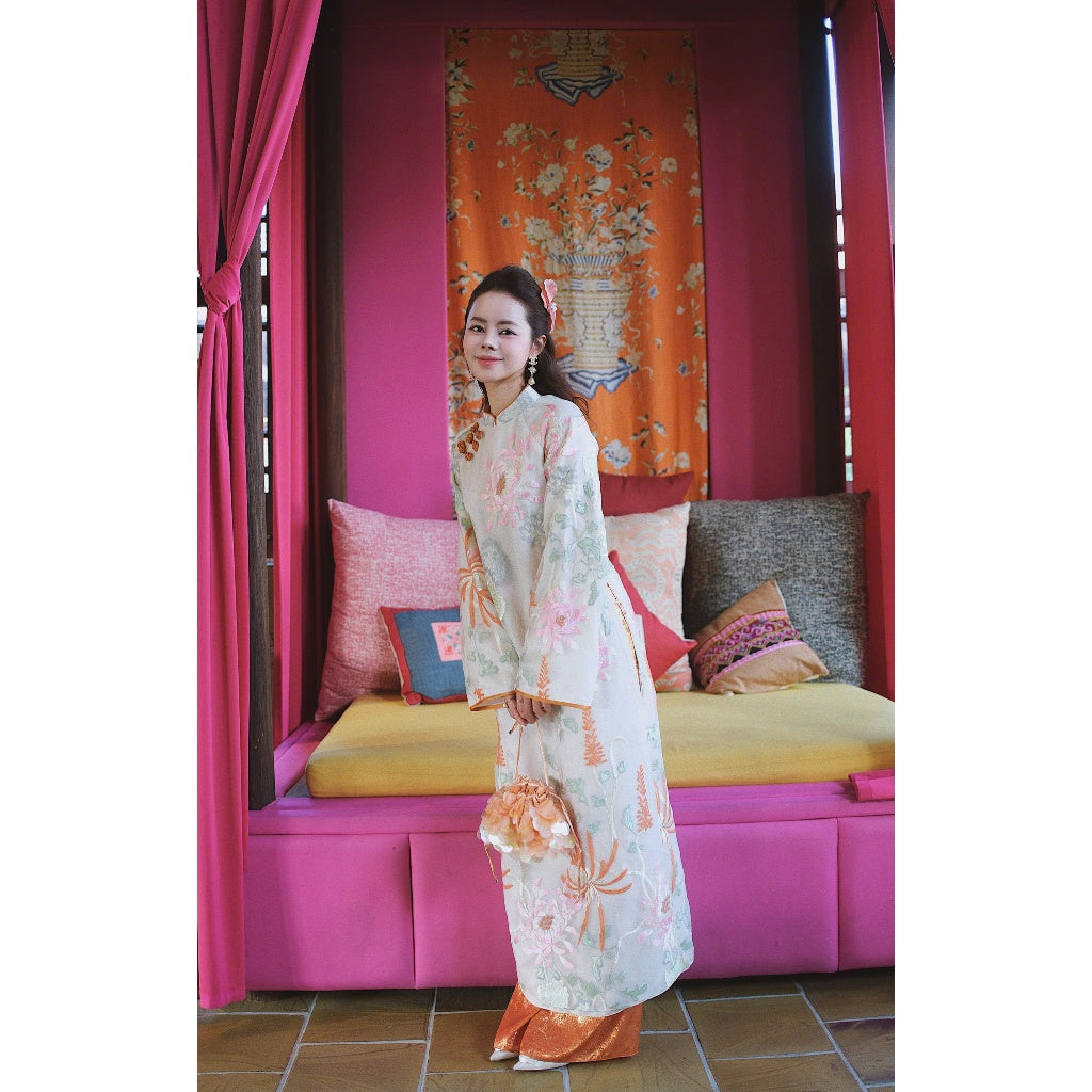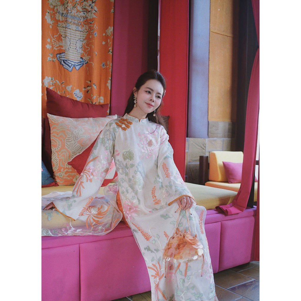 [PRE-ORDER] Thuc Yen 4-panel Ao Dai with embossed floral embroidery