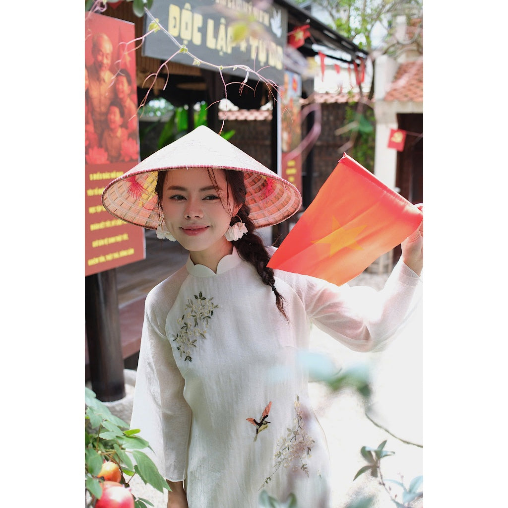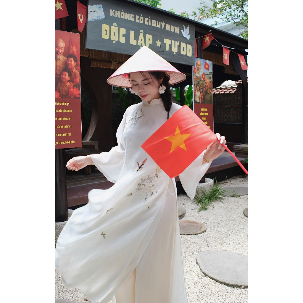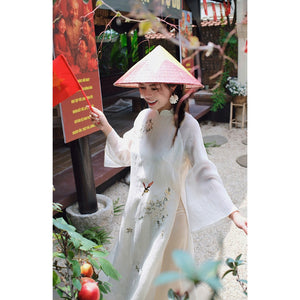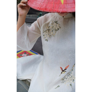 [PRE-ORDER] 4-panel Ao Dai with hand-embroidered flowers by Hoang Doanh LINN Design