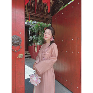 [PRE-ORDER] Modernized ao dai with 4 panels embroidered with hand-made ribbons by Cam Tich LINN Design