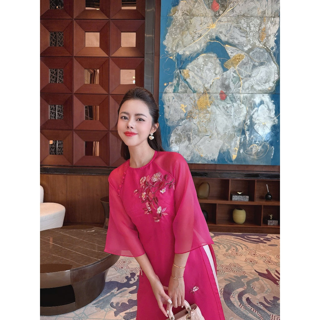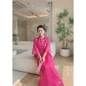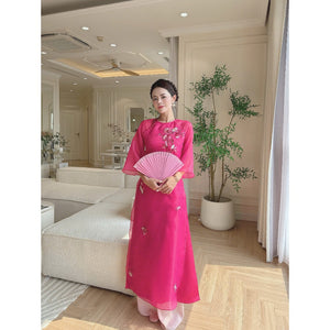 [PRE-ORDER] Cat Anh pink lotus modernized ao dai