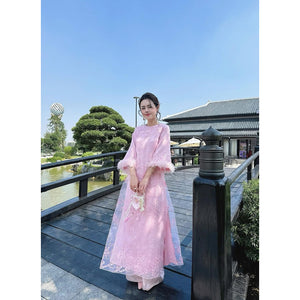 [PRE-ORDER] My Nhan innovative ao dai with feather sleeves