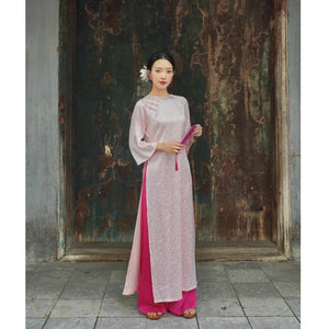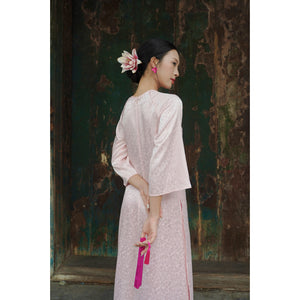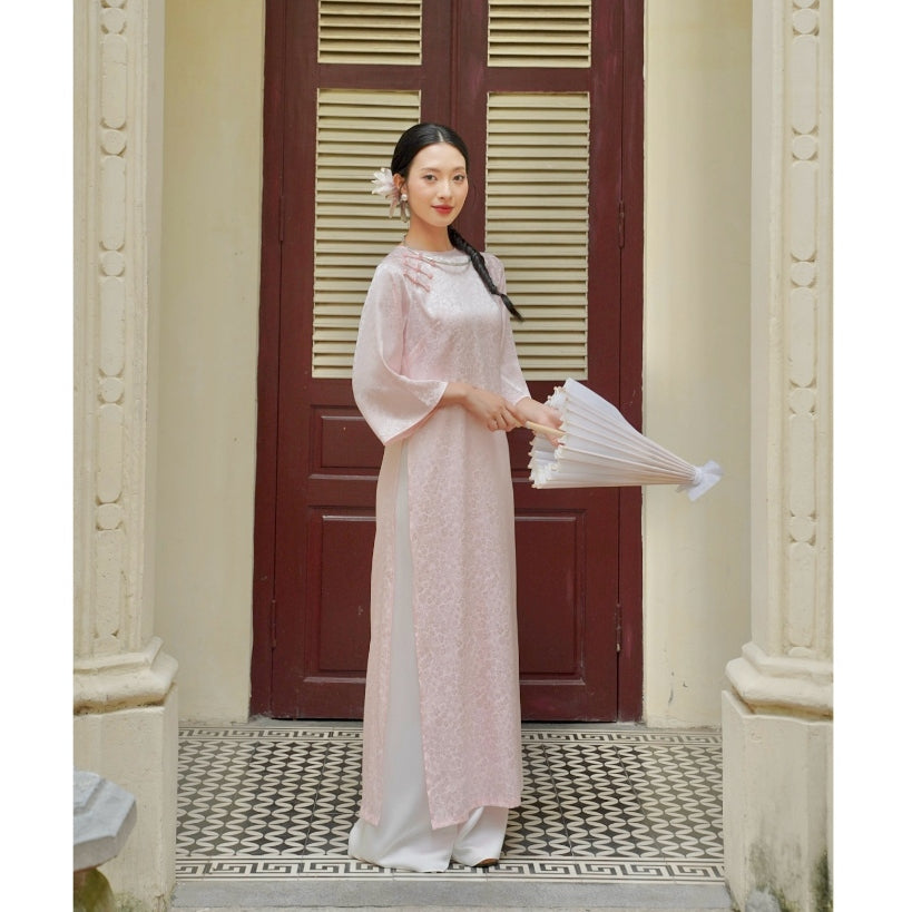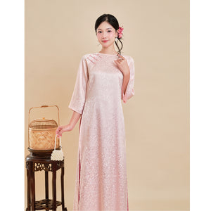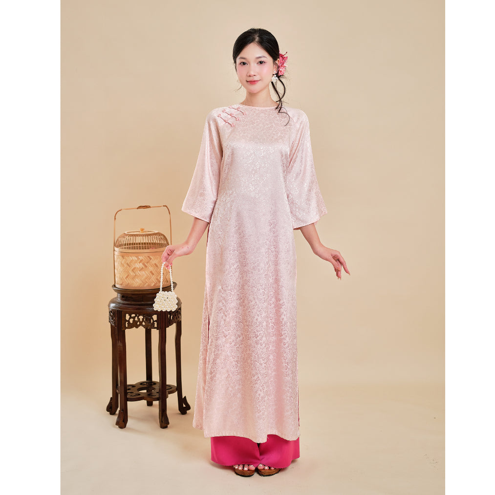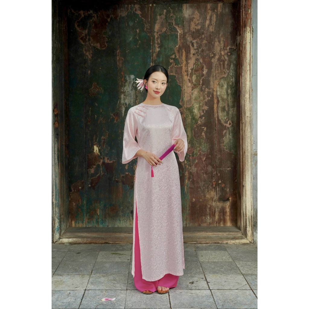 Chi Lan Ao Dai designed with high quality silk brocade material, pearl chopstick buttons, modernized Ao Dai with straight 2 panels - SD004 LANA DESIGN