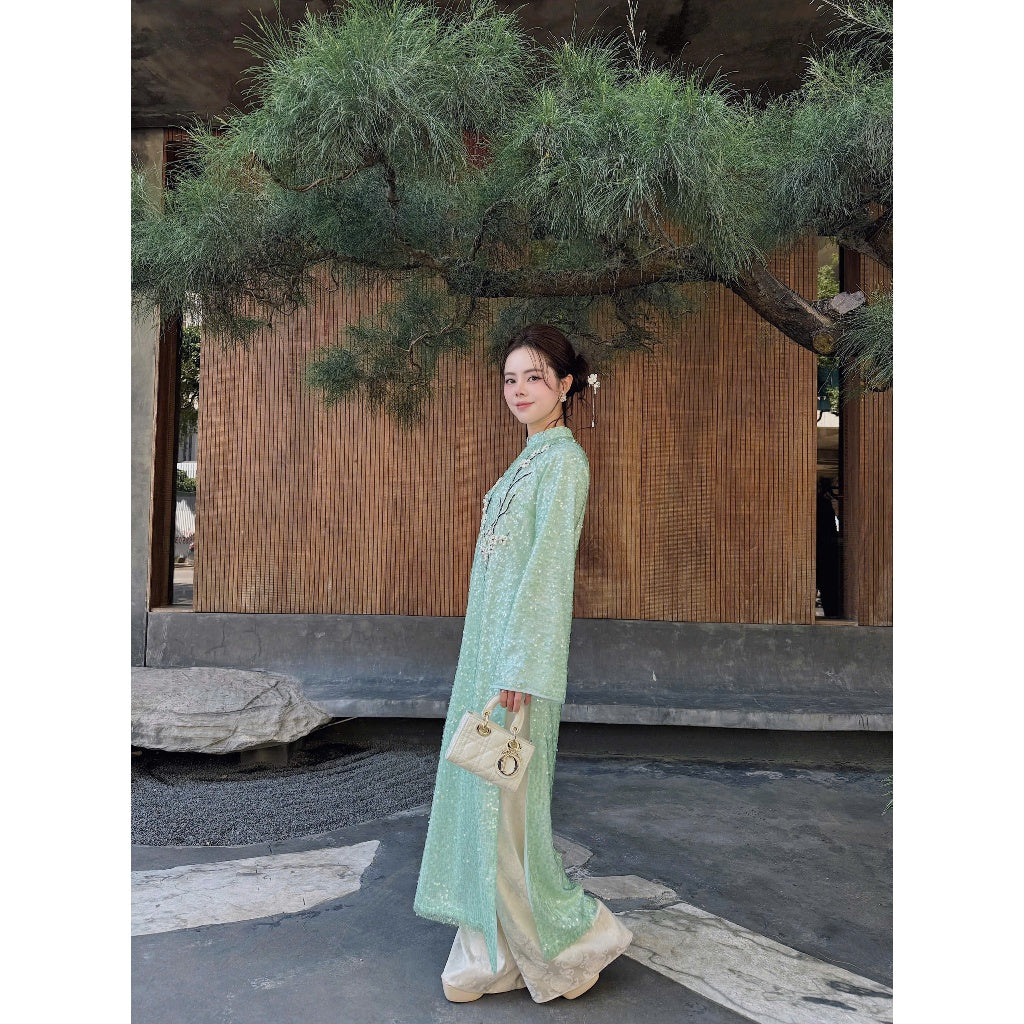 [PRE-ORDER] Sequin Ao Dai Embroidered with Bach Diep Ribbon