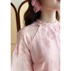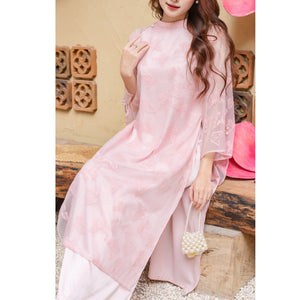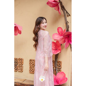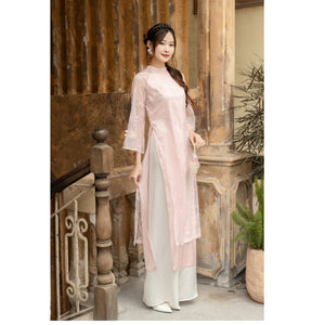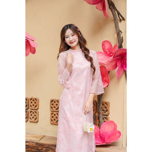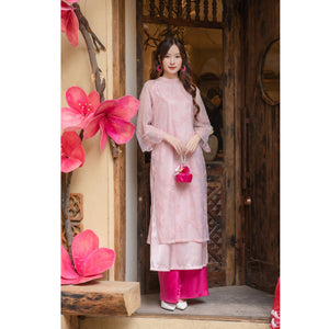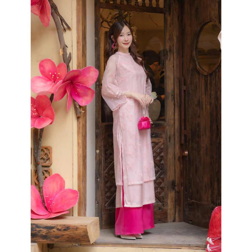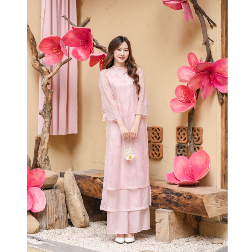 Hong Diep feminine ao dai with hidden velvet butterfly pattern, modernized ao dai made of high-quality silk, pink color - SD005