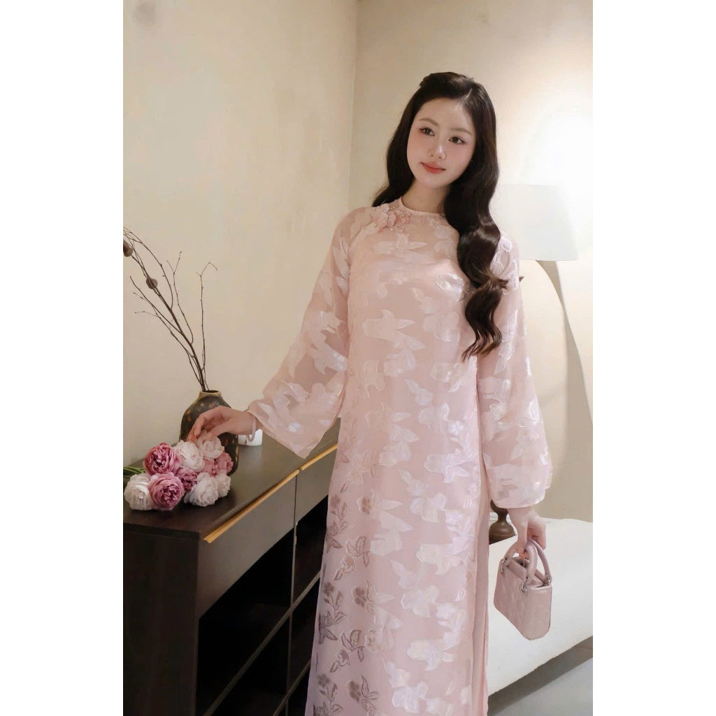 [PRE-ORDER] Ao Dai with 4 panels, floral design, straight cut, and pants