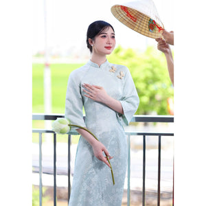 [PRE-ORDER] MODERN Ao Dai with brocade pattern, flared sleeves and pants
