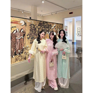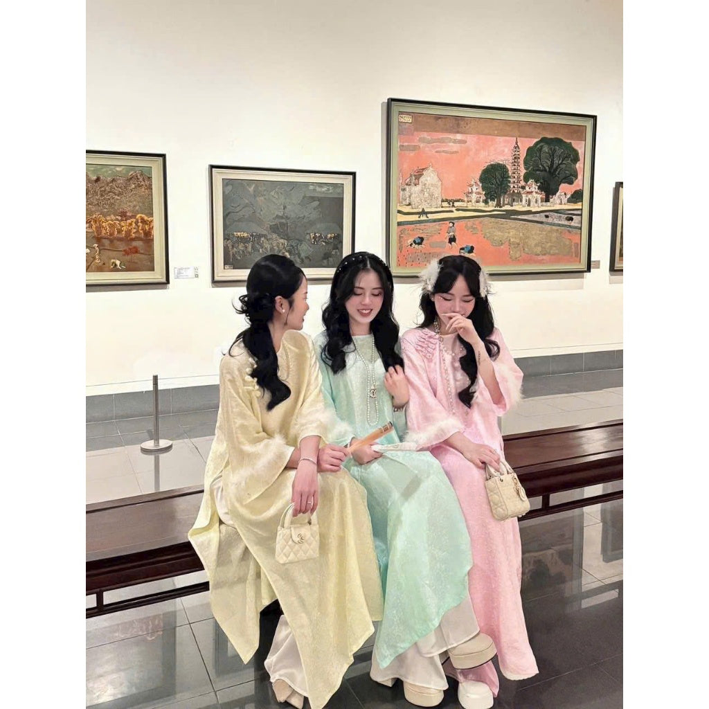 Home [PRE-ORDER] Phuc An silk Ao Dai with fur sleeves and pants