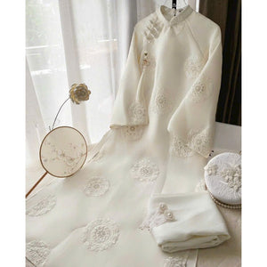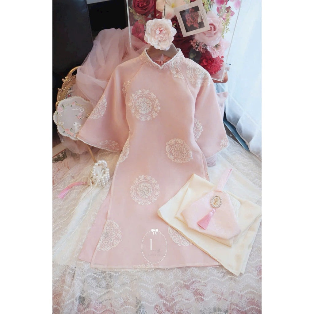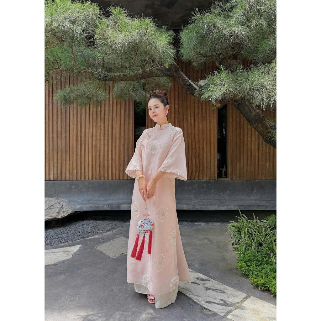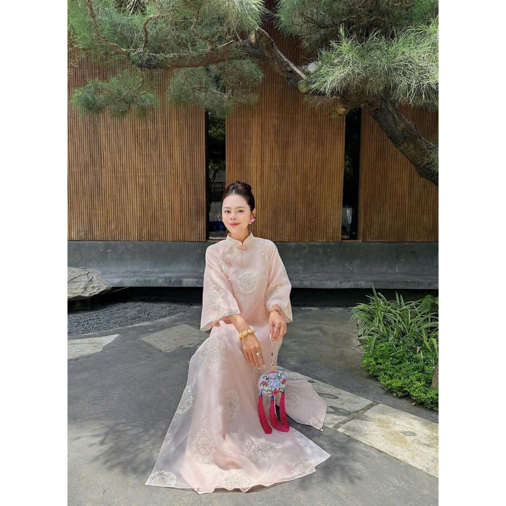[PRE-ORDER] Thuy Khue Ao Dai with 4 panels, Floral Embroidery design, and pants