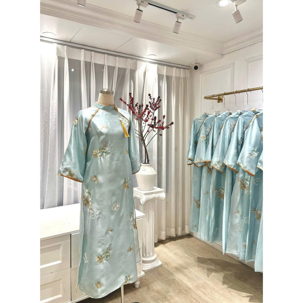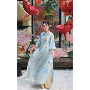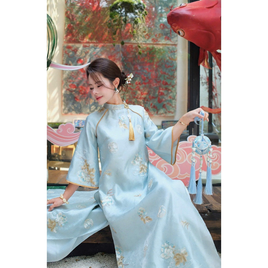 [PRE-ORDER] Tue Hien 4-panel Ao Dai made of silk with embroidered floral motifs and pants