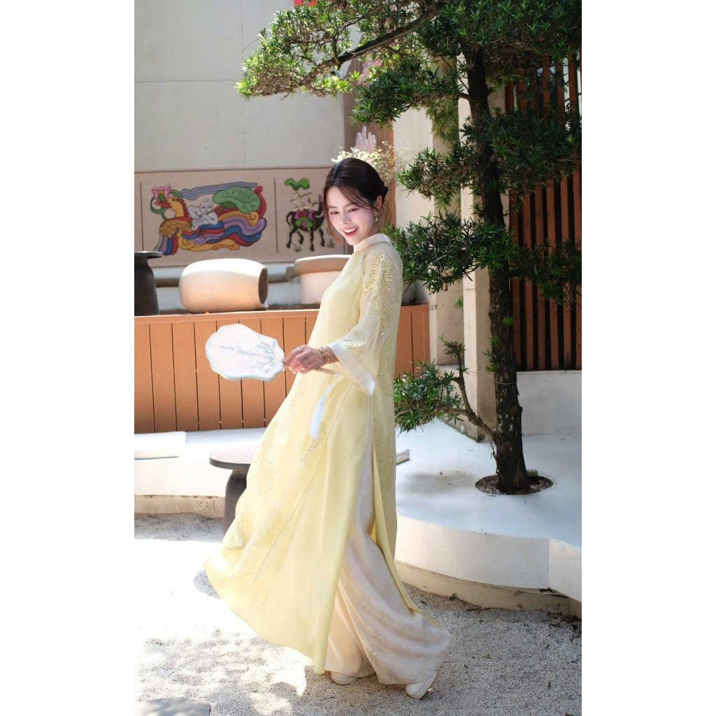 [PRE-ORDER] 4-panel chiffon Ao Dai with floral pattern and pants
