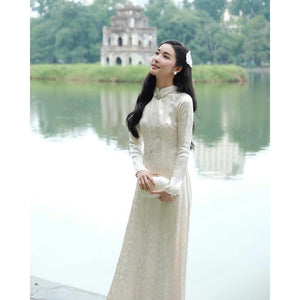 [PRE-ORDER] Luxurious WHITE PHOENIX BROCADE Ao Dai with pants