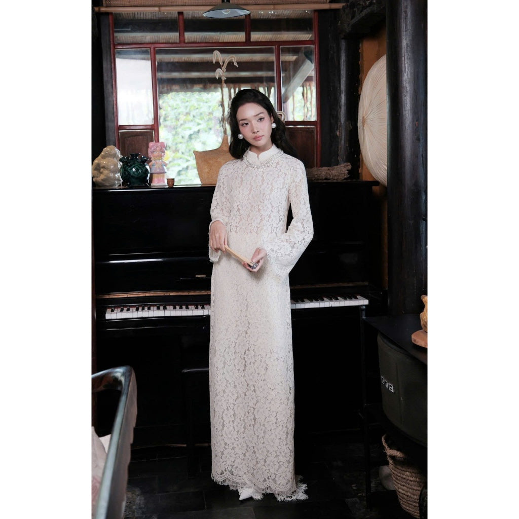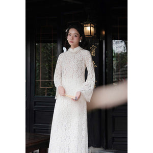 Home [PRE-ORDER] Traditional Ao Dai with flared sleeves and luxurious lace pattern with pants