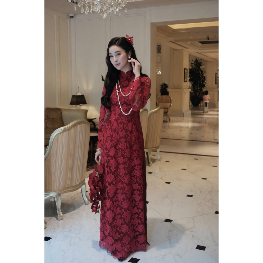 [PRE-ORDER] Traditional Ao Dai with flared sleeves and luxurious lace pattern with pants
