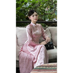 [PRE-ORDER] Truc Anh Traditional Ao Dai, soft Silk Brocade, flared sleeve design, waist-hugging, with pants