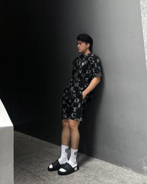 DirtyCoins Letters Monogram Denim Jersey Shirt - Black