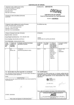 IMPORT DOCUMENTS FABRIC FROM AUSTRALIA AND EXCLUSIVELY PRODUCED AT BEIJING FACTORY: