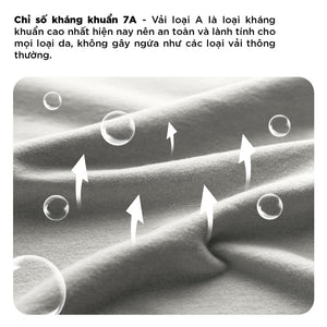 Type A fabric - antibacterial index 7A is the highest antibacterial type today, so it is safe and benign for all skin types, does not cause itching like regular fabrics.