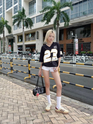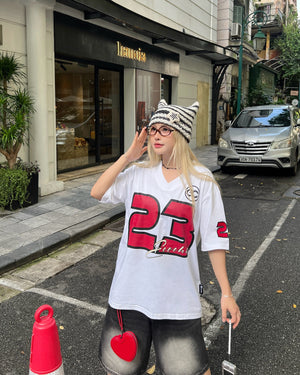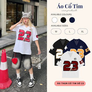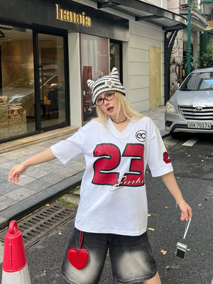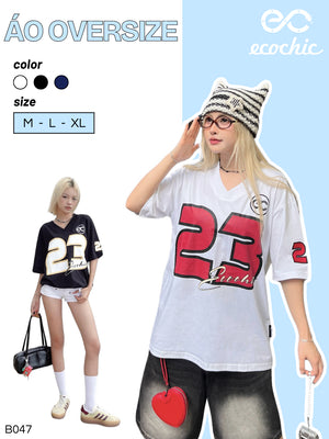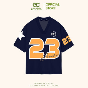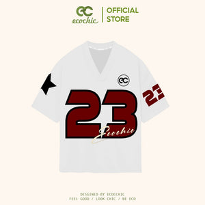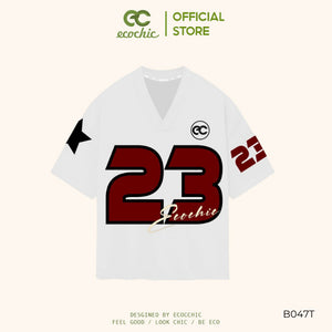 Genuine ECOCHIC NUMBER 23 V-neck T-Shirt Unisex Sports Loose Oversize 100% Premium Cotton B047