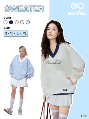 Home ECOCHIC V-NECK SWEATSHIRT High Quality Genuine Material Sweater Many Colors B085