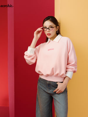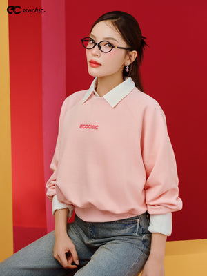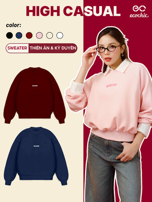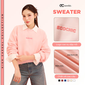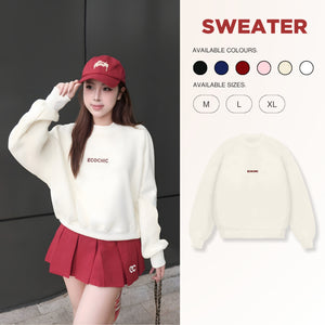 ECOCHIC ARCTIC BLOOM Basic Sweater Round Neck Logo Chest High Quality Genuine Double-Skin Fleece Material B192