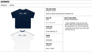 Levents Dream Maker Raglan Oversized Tee 100% Cotton Unisex T-shirt