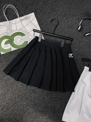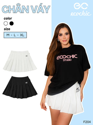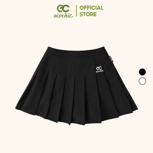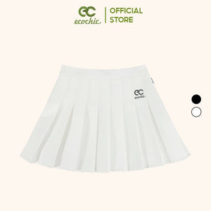 ECOCHIC Short Flared Pleated Skirt Basic Logo Embroidered High Quality Material Black and White F204