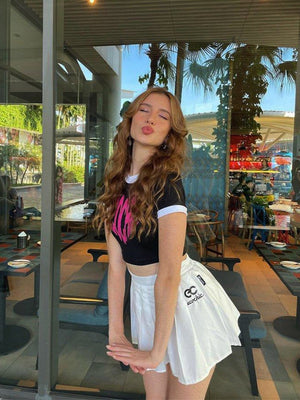 Home ECOCHIC Short Flared Pleated Skirt Basic Logo Embroidered High Quality Material Black and White F204