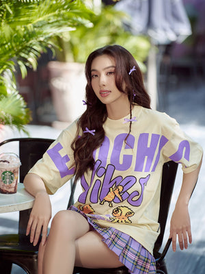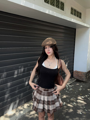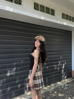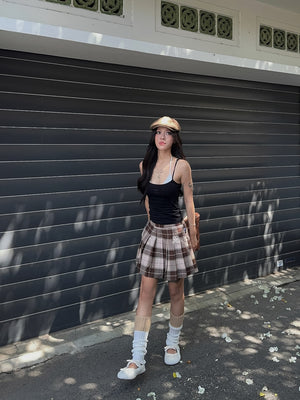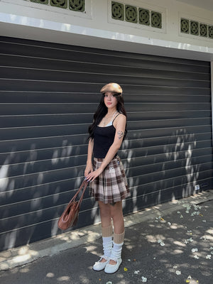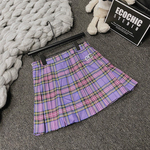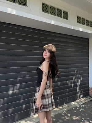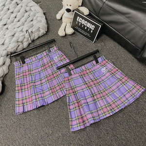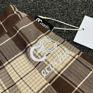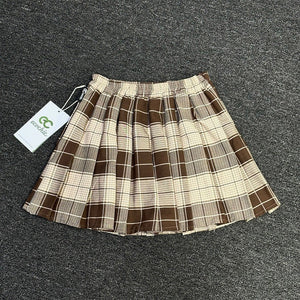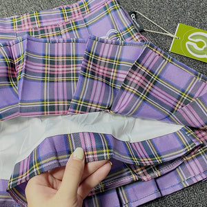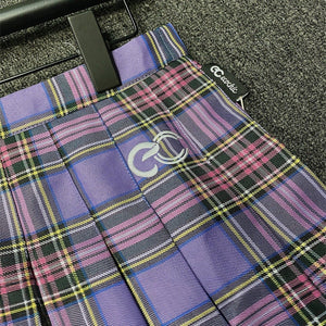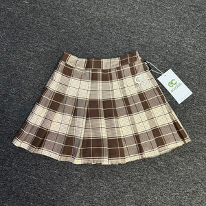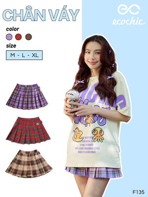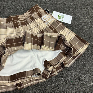 ECOCHIC SKIRT TARTAN Short Pleated Skirt with Brocade Pattern Brown Purple Red F135