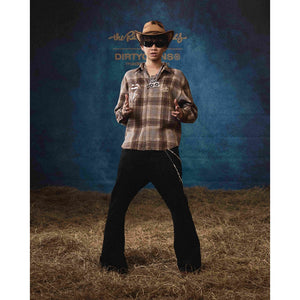 [DCxRS] DirtyCoins Flannel Western Rivet Brown Jacket