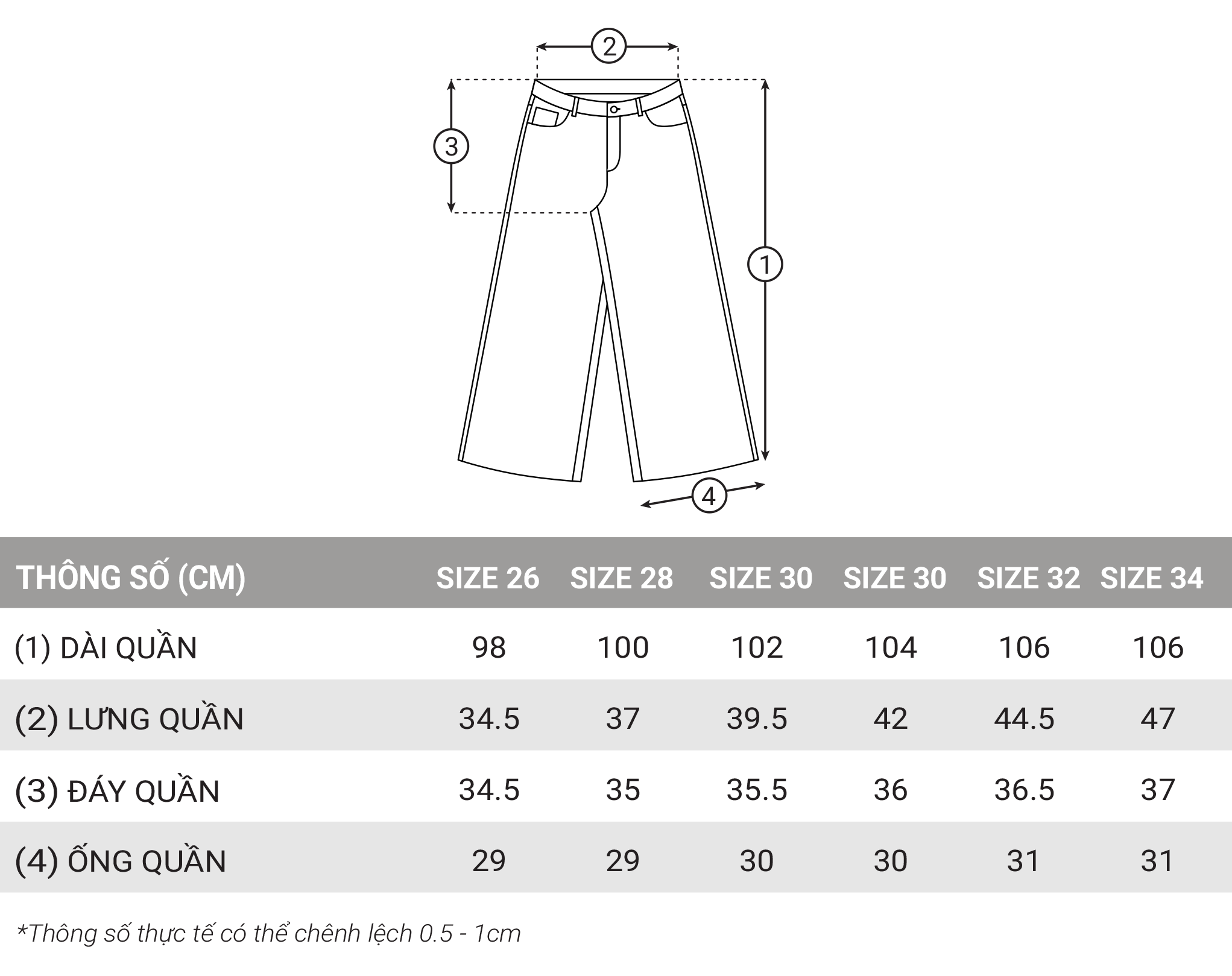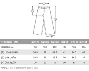 • Kích thước: 26 - 28 - 30 - 32 - 34 - 36