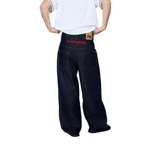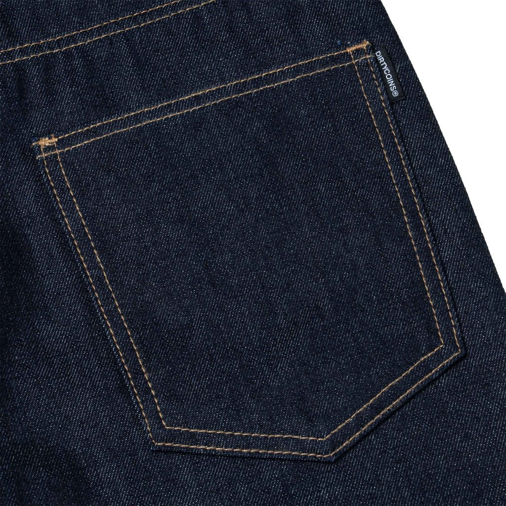 [DCxRS] DirtyCoins Logo Embroidery Raw Denim Pants