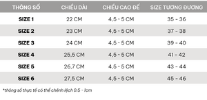 • Sizes from 1 to 6 (equivalent to sizes 35 to 46)