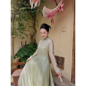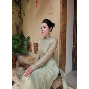 [PRE-ORDER] LINN Design 4-panel modernized ao dai with hand-sewn flowers by Diep Kha
