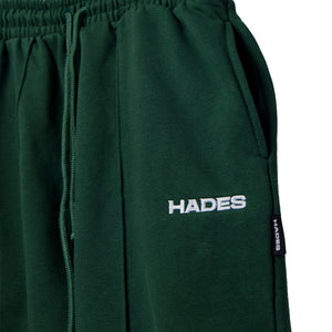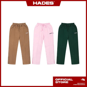 Center seam. Embroidered Hades logo. Ankle zipper. Elastic waistband.