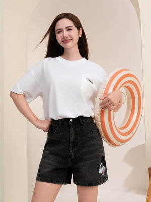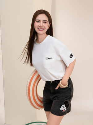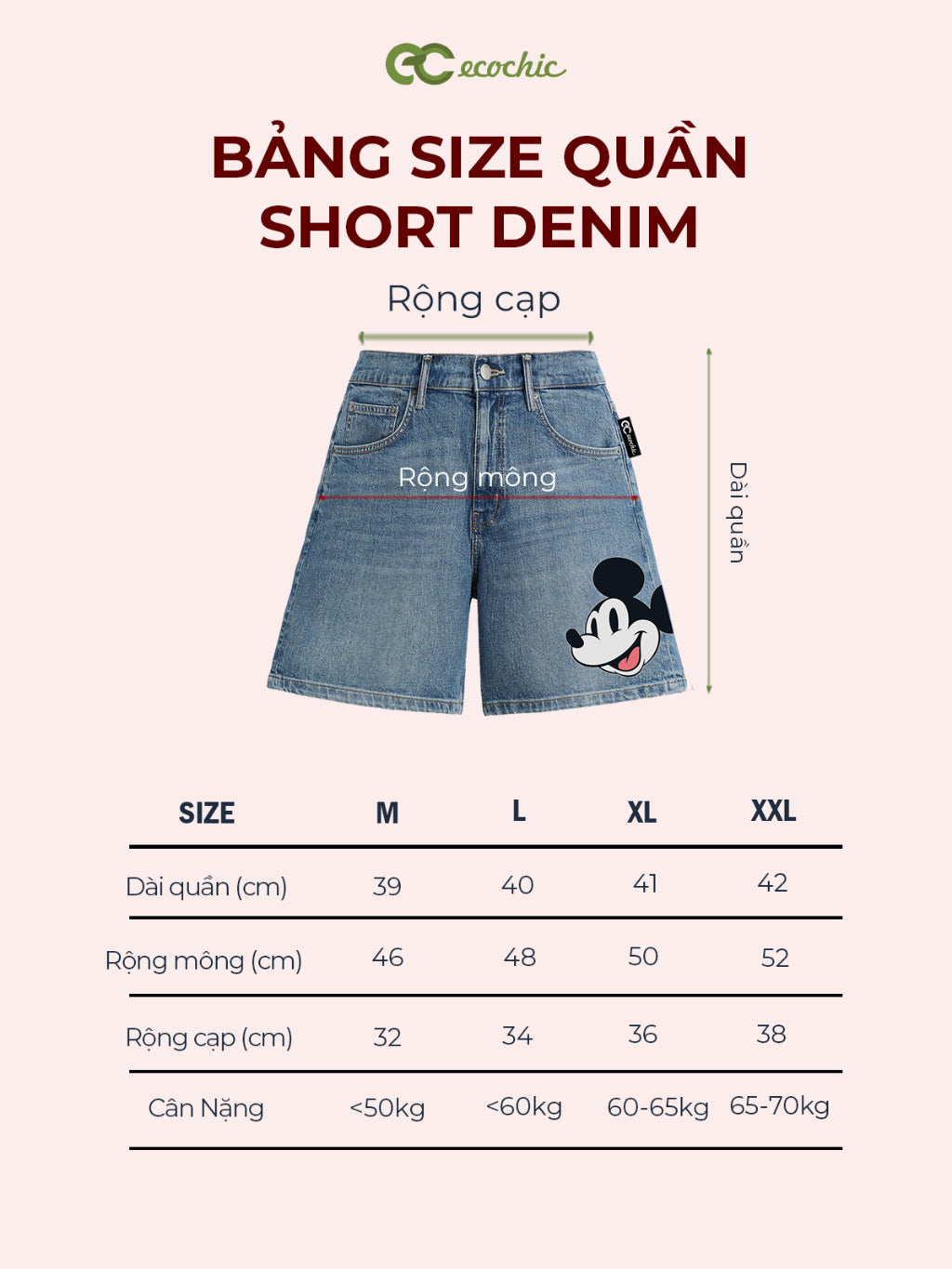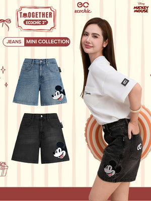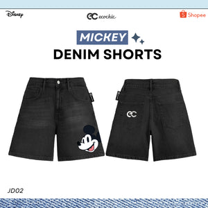 ECOCHIC MICKEY Jeans Denim Shorts for Men and Women, High Quality Faded Color, Genuine Disney Copyright JD02