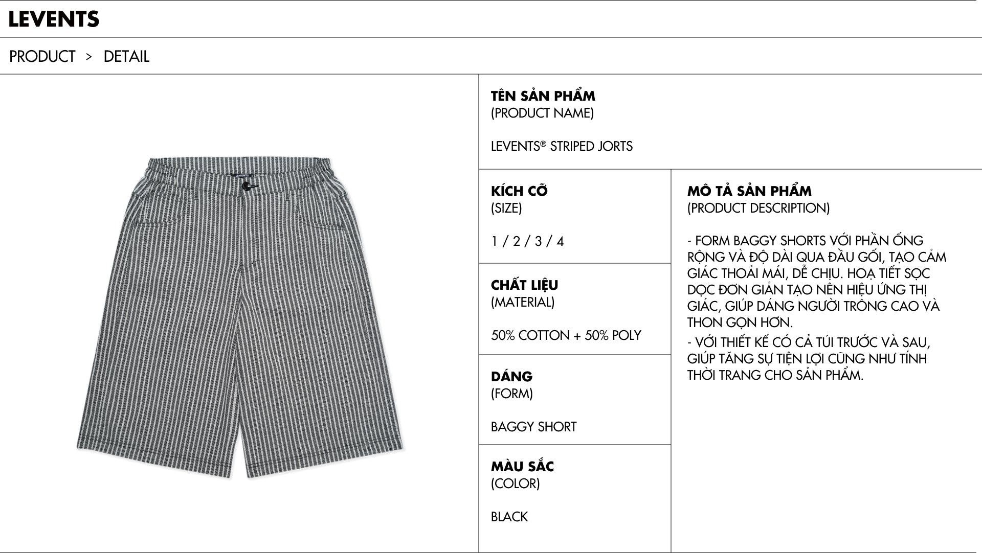 Levents Striped Jorts/ Black 50% Poly & 50% Cotton Unisex