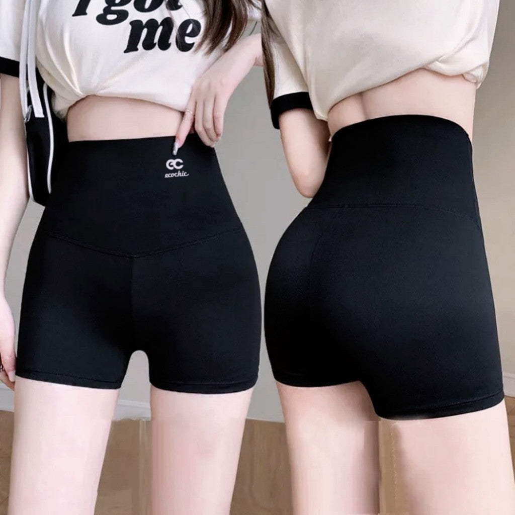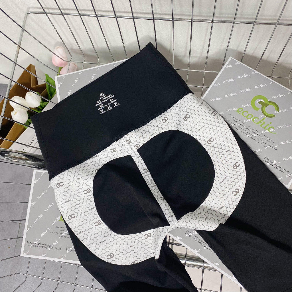 ECOCHIC women's high waisted cropped leggings for gym and yoga, molded rubber material, shaping and lifting buttocks A688