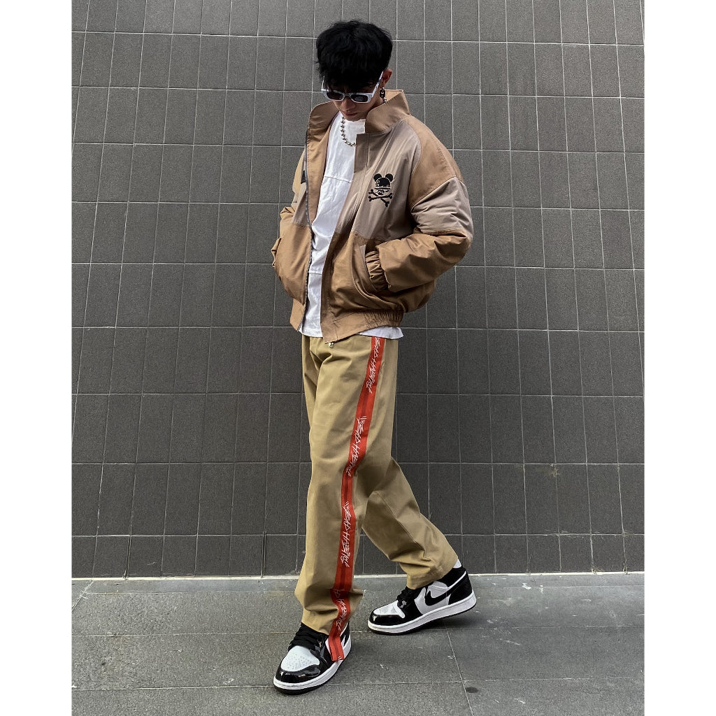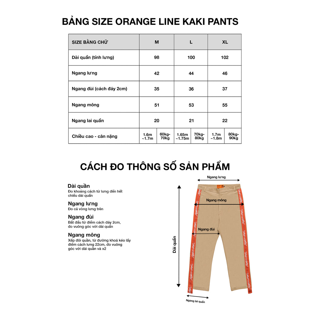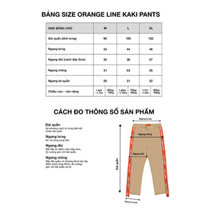 ORANGE LINE KAKI uses high-quality khaki material 97% cotton 3% Spandex with slight stretch, the fabric surface is treated to shrink so it is quite soft. The highlight of these pants is the orange stripes on both sides of the pants with BAD's signature.