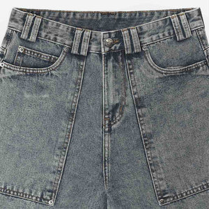 Home NEEDS OF WISDOM Wide Fit Denim Shorts - Washed Gray Blue - Genuine Local Brand
