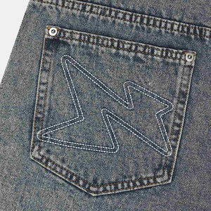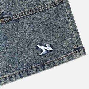 Product: NEEDS OF WISDOM Wide Fit Denim Shorts - Washed Gray Blue