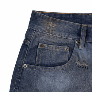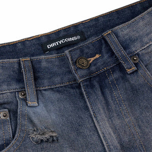 DirtyCoins Double Knee Shorts Distress Blue Wash