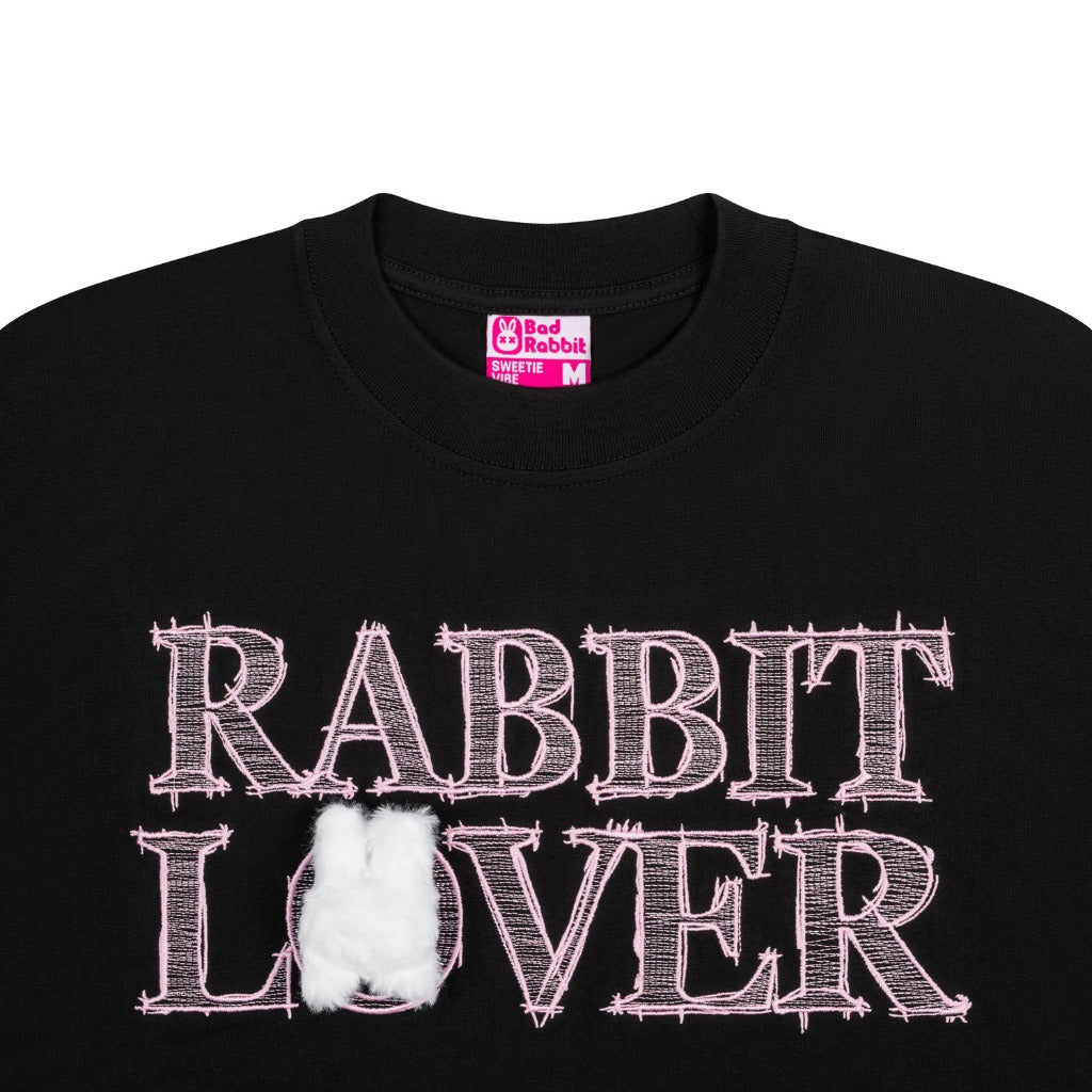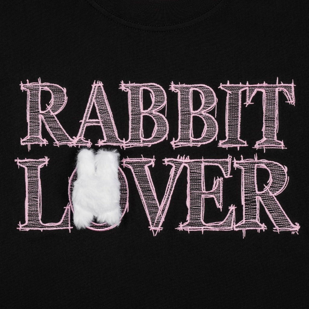 A tee dedicated to Rabbit Lover. The design stands out with embroidered graphics on the front and a unique bunny head detail, adding a lovely touch to the outfit.