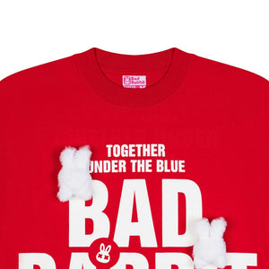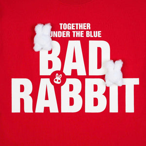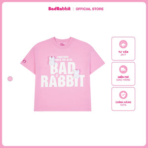 The tee carries the cutest message of the summer: Together under the blue. Comfortable regular form design, prominent silk screen printing of the words "BAD RABBIT" in the center. The highlight that cannot be missed is the 2 fluffy rabbit heads attached to the shirt.