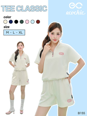 ECOCHIC URBAN BLOOM Short Set Crop T-shirt High Waist Shorts High Quality Genuine ECO ON THE GO B155