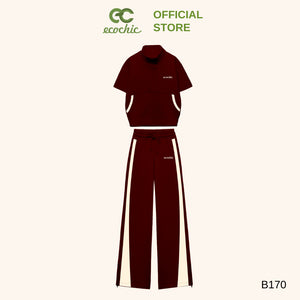 ECOCHIC SWEET DAILY DARLING Long Set High Neck Shirt with High Waisted Pants Made of High Quality, Soft, Genuine Material B170