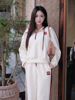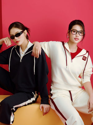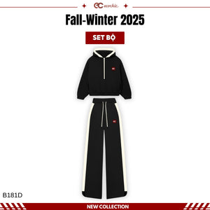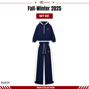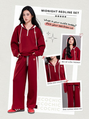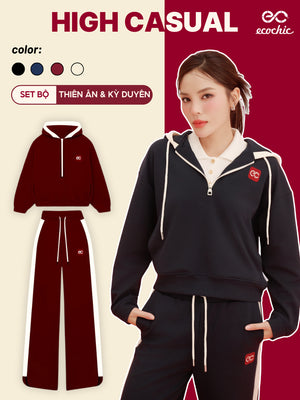 ECOCHIC MIDNIGHT Set Halfzip Hoodie, Drawstring Straight Pants, Linen, High Quality Manba Cotton, Genuine B181